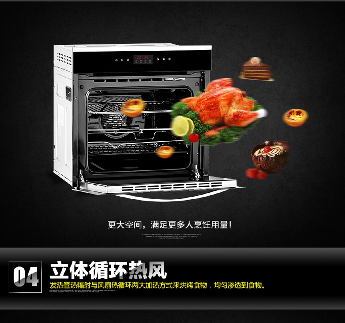 60L大容量;內(nèi)置全自動精確控溫探頭;立體循環(huán)熱風(fēng);高溫搪瓷內(nèi)膽;
