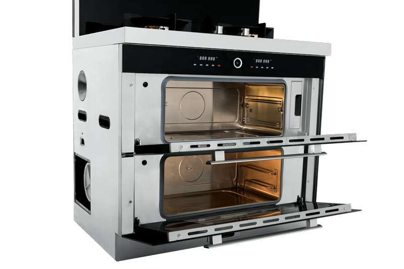 上蒸箱、下烤箱,實(shí)現(xiàn)邊蒸邊烤。更高效,更節(jié)能。