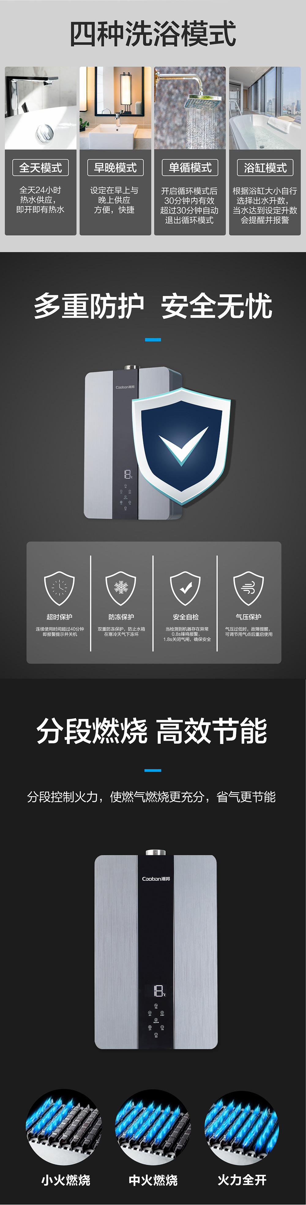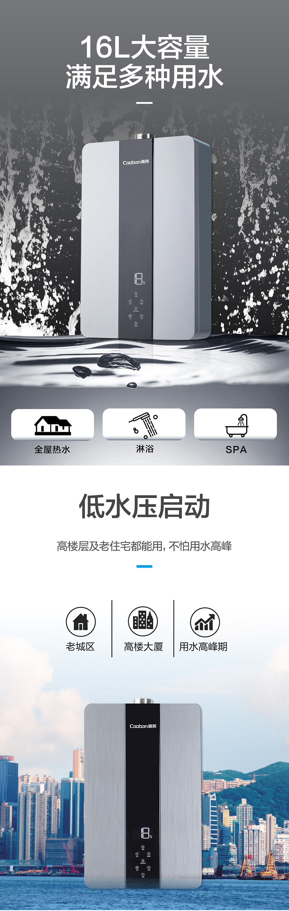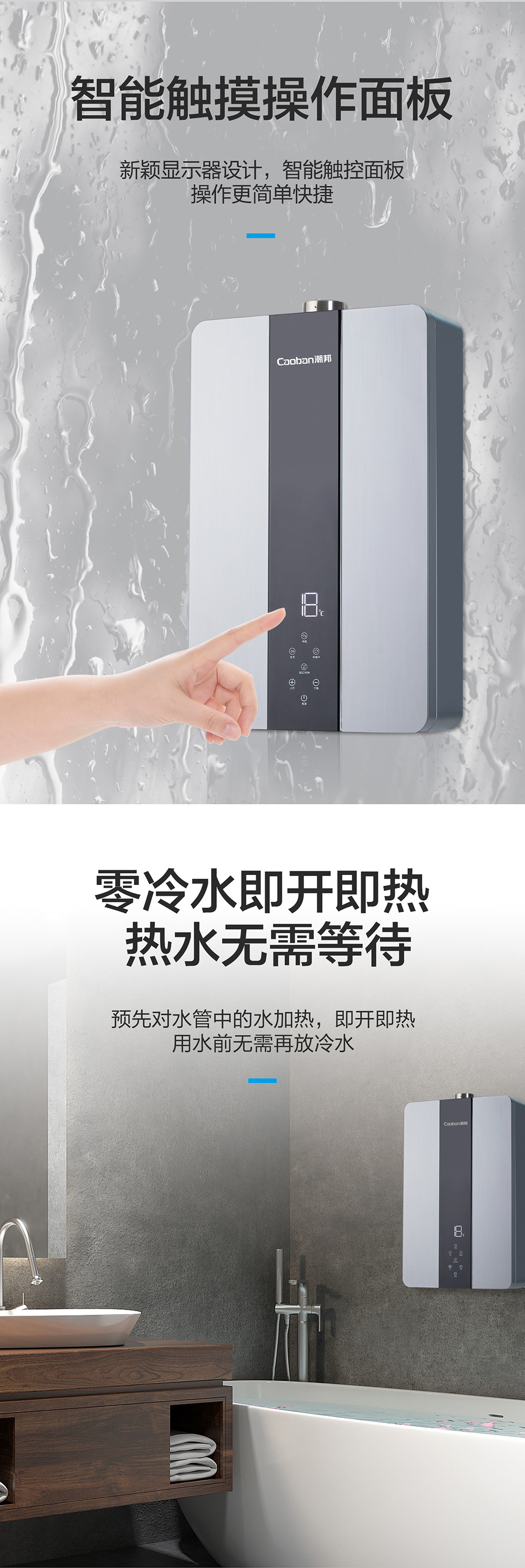 零冷水,智能恒溫,低水壓啟動。