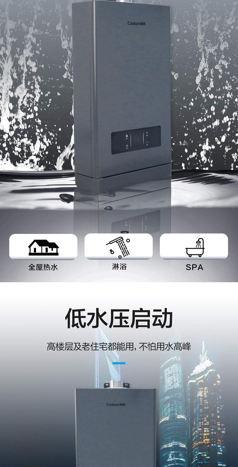 智能恒溫,無(wú)氧抑菌水箱,分段燃燒,低氣壓?jiǎn)?dòng),節(jié)能高效。
